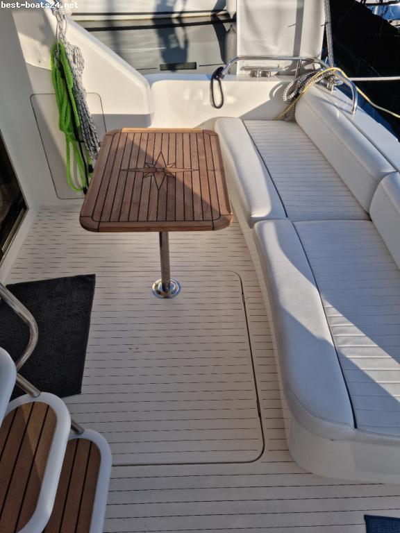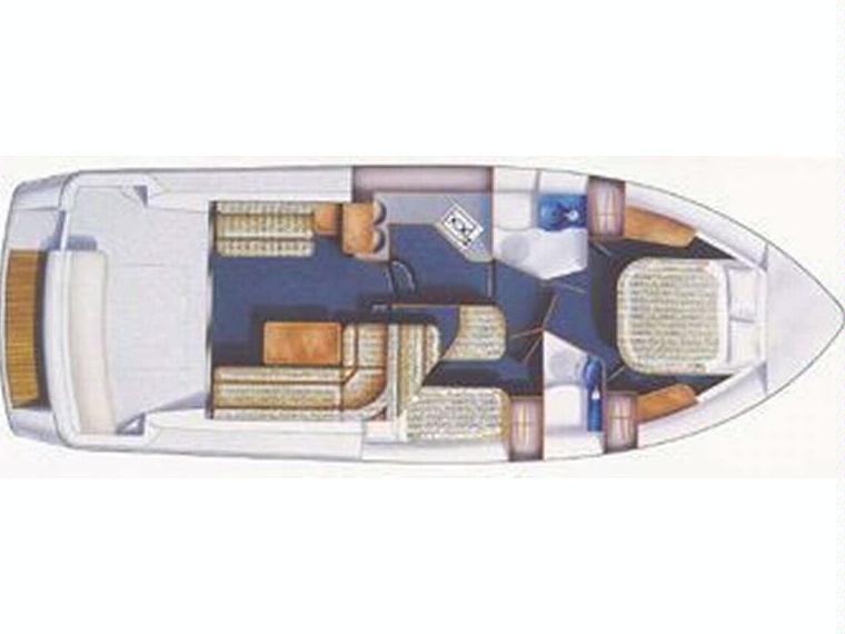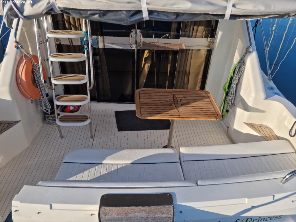 Die Motoryacht aus dem Hause Princess ist ein GFK Halbgleiter. Sie bietet 4 Personen ausreichend Platz und zeichnet sich durch ihren großzügigen Salon aus. In Verbindung mit den Schiebetüren zum Achterdeck ensteht ein zusammenhängender Aufenthaltbereich für 8-10 Personen. Im Fahrbetrieb ist die Yacht für 8 Personen zugelassen. Mit den zwei Volvo  Penta TAMD63P Motoren a 370PS ist sie nach CE Klasse A zertifiziert und somit Hochseetauglich.